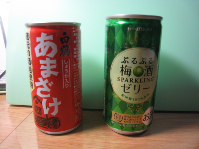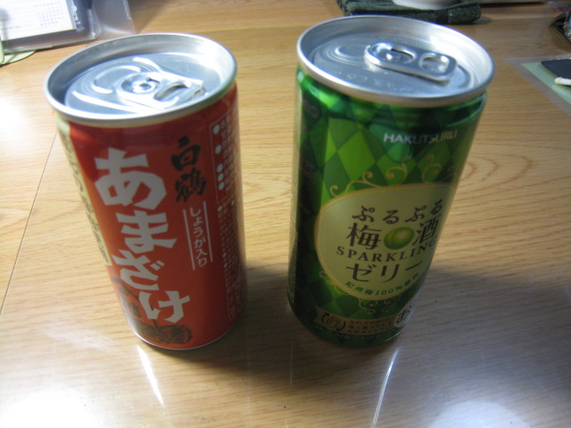 缶の「あまざけ」と「梅酒ゼリー」があったので、1缶ずつ自分の