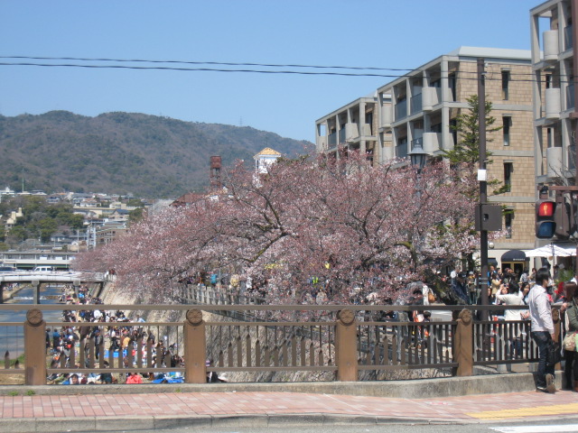 芦屋川の花見とさくら通り 風船 公開日: 2012年4月10日 カテゴリー: エンジョイ・ライフ、日記 ■ 芦屋川の桜を見に行って来ました。 8日(日)には、3分咲きだった桜も、ようやく8分咲きぐらいで、 満開一歩手前でした。 (8日(日)の芦屋川の桜、大正橋から北側) ↓ (8日の芦屋市民センター前 桜まつりで、ここは車の通行止めで、 屋台もあり、大勢の人出で大混雑。 西側の河原では特設のステージ) ↓ (今日は8分咲きほど 阪急芦屋川から北側) ↓ (通称「さくら通り」 JR線路上から青少年センター方面へ) ↓ (生垣がキンカンのお宅もありました) ↓ (キンカンは、こんなふうに成っていました) ↓