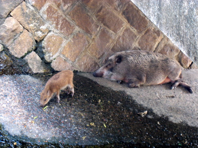 でも、この親子のイノシシたちは、別段 驚く様子もなく、