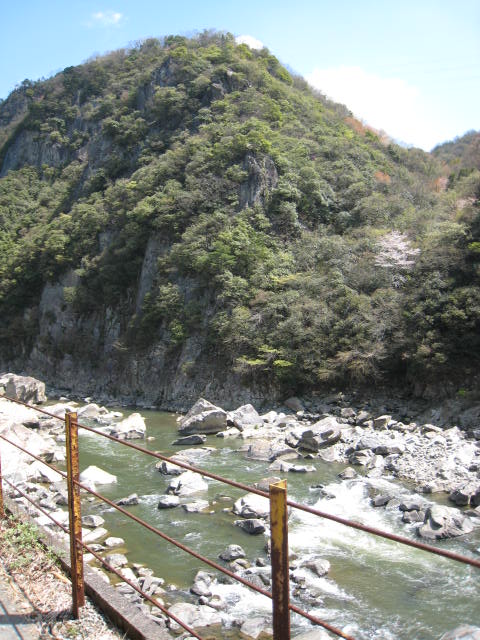 鉄橋わきの通路や、河原が広い武庫川渓谷を下に見るような