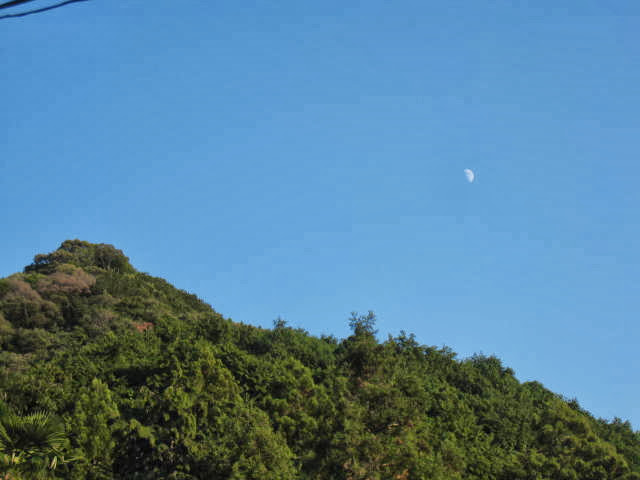 (歩き終えた山を見上げれば、半月もにっこり!)