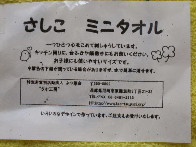 このネコ?は、下の写真にもあるように、さしこのミニタオルです。