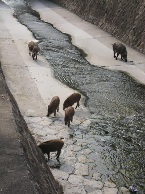 久しぶりのイノシシ一家(2013年11月) 風船 公開日: 2013年11月24日 カテゴリー: 日記 イノシシ一家 少し前になりますが、隣駅(阪急神戸線岡本駅)近くの 天井川沿いを歩いていると、久しぶりにイノシシを見ました。 (写真は、クリックすると大きな写真が表示されます) 残念ながら、ウリ坊ではなかったですが、 また子どもたちもいました。 一家でしょうか? (^。^)