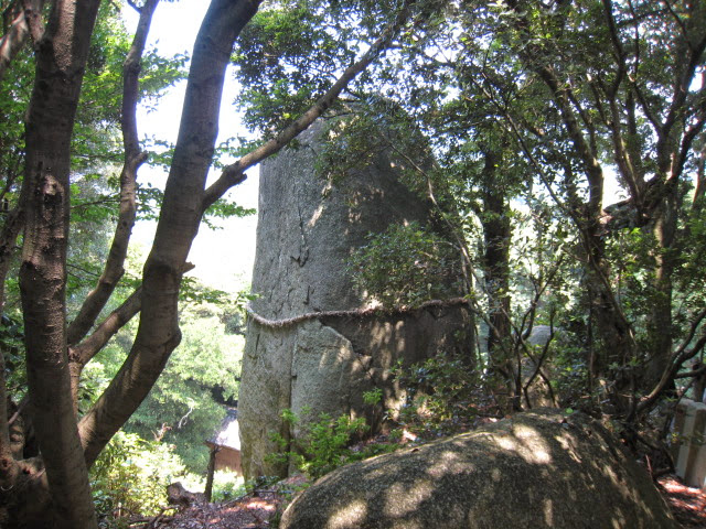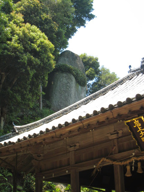 岩上神社に少し道に迷いながら到着すると、神籠石(ひもろぎいし)と呼ばれる巨石があり、その大きさや姿・形は圧巻でした。