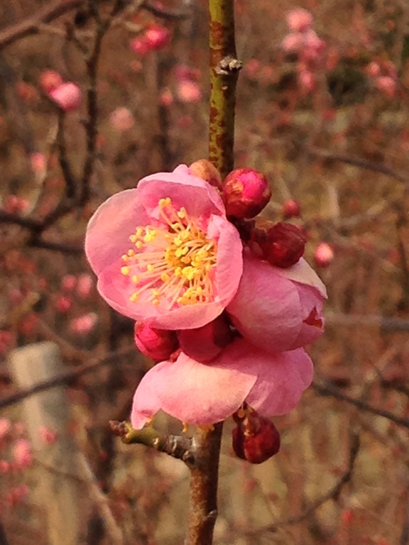 紅梅やピンクの花は、けっこう咲いていましたが、白梅はまだつぼみの木が多かったです。