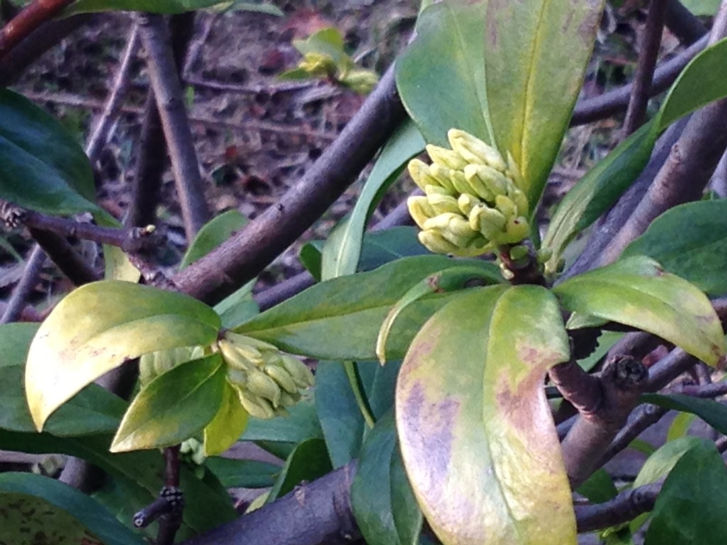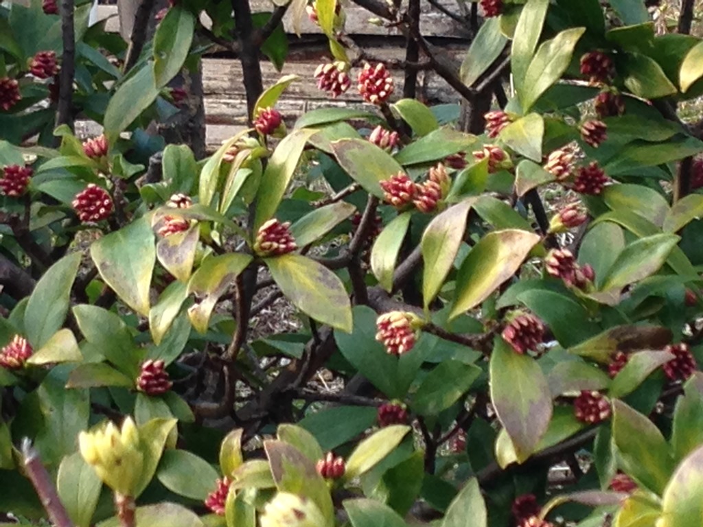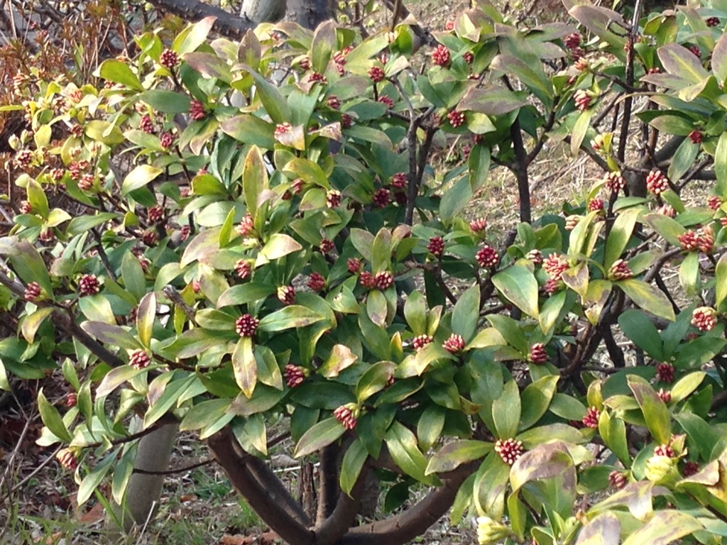 (沈丁花のつぼみが膨らんでいました。)
