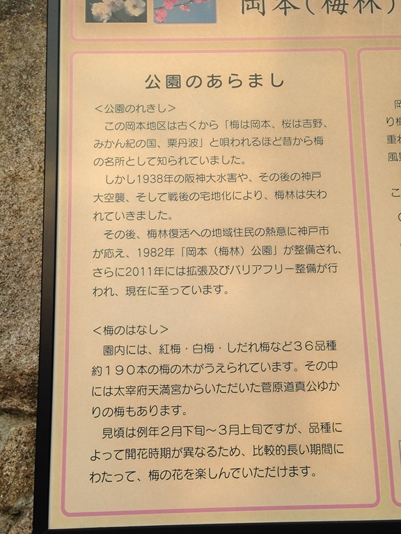 2月15日(木)に、隣駅(阪急神戸線岡本駅)から歩いて15分ほどの上り坂を歩いた所にある岡本梅林公園へ行ってきました。