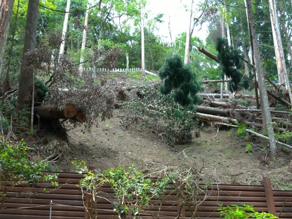 倒木の影響で、日当たりがよい場所、向かいの山が見える場所ができていました。