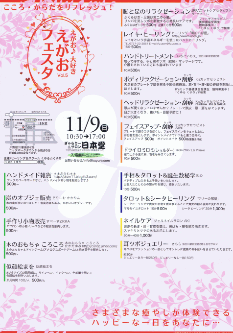 詳細は、えがおフェスタ Vol.5 (11月9日・日曜) をご覧ください。